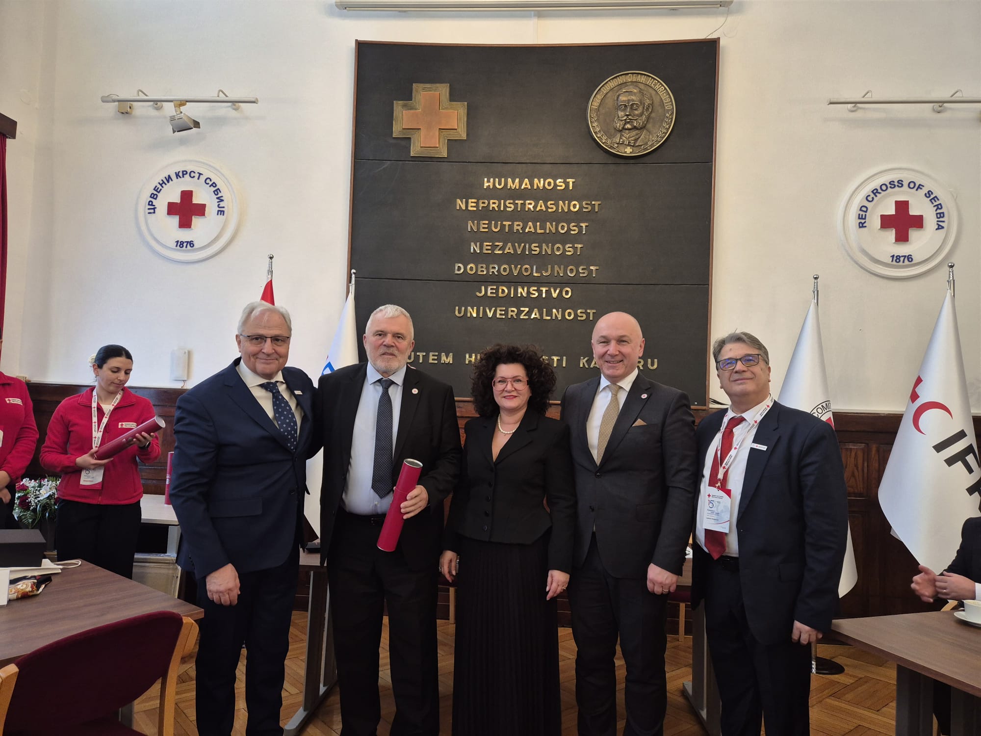 Predsjednik Hrvatskog Crvenog križa Željko Grubišić, izvršni predsjednik Robert Markt, zamjenica izvršnog predsjednika Marina Pinjagić Telak te Maja Antonić Vrbota, voditeljica Službe za međunarodne poslove i izdavaštvo boravili su u Beogradu u povodu obilježavanja 150. obljetnice postojanja i humanitarnog djelovanja Crvenog križa Srbije.