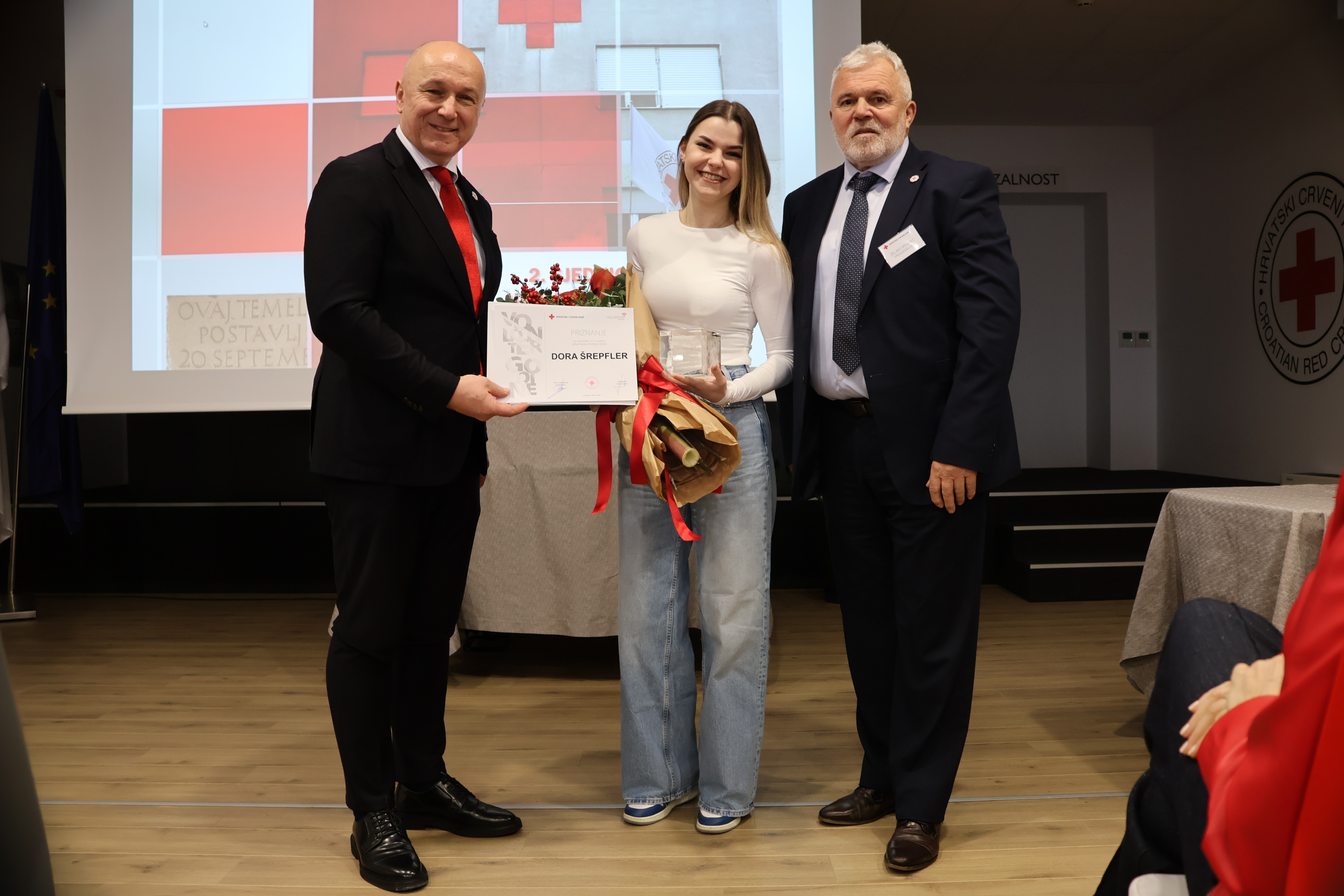 Nagrade su danas uručene onima koji su svojom strašću, posvećenošću i kontinuiranim angažmanom zaslužili Godišnju volontersku nagradu Hrvatskog Crvenog križa. Te se nagrade dodjeljuju volonterkama i volonterima koji su se tijekom godine istaknuli iznimnim doprinosom u provedbi programa i aktivnosti Crvenoga križa. Za 2024. godinu priznanje za volonterku godine odlazi Dori Šrepfler, dok je volonterskim timom godine proglašen Tim za promicanje važnosti mentalnog zdravlja djece i mladih iz Vinkovaca.